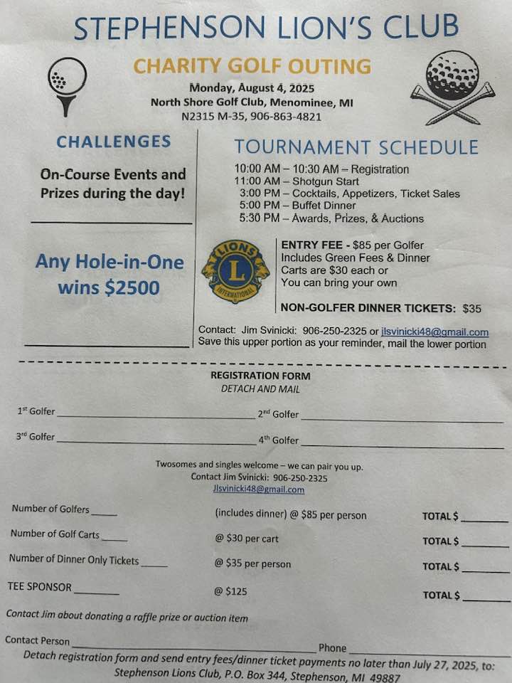 Stephenson Golf Outing Still have room to get your team in the Stephenson Lions golf outing. Click here for details.